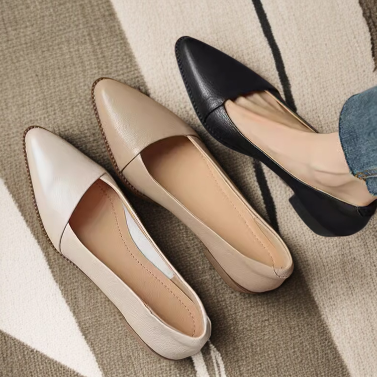 살구색 소프트 가죽 여성 스틸레토 단화 미들 굽 통굽 여성화