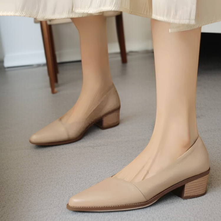 ● 부드러운 살구색 소프트 가죽 소재로 제작되어 편안한 착화감과 고급스러운 분위기를 동시에 연출합니다. ● 세련된 스틸레토 디자인과 미들 굽, 통굽 조합으로 다리 라인을 예쁘게 살려주며 장시간 착용에도 발이 편안합니다. ● 여성스러운 감성에 실용성을 더한 디자인으로 데일리룩, 오피스룩, 특별한 자리까지 다양한 스타일링에 잘 어울립니다. ● 미끄럼 방지 아웃솔과 안정감 있는 통굽으로 활동이 많은 하루에도 부담 없이 신을 수 있습니다. ● 트렌디한 컬러감과 모던한 실루엣으로 계절과 상관없이 다양한 패션에 매치하기 좋은 아이템입니다.